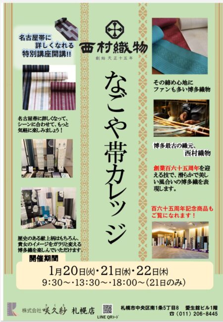 ~なごや帯カレッジ 西村織物~ 1月21日㈫~23日㈭ -